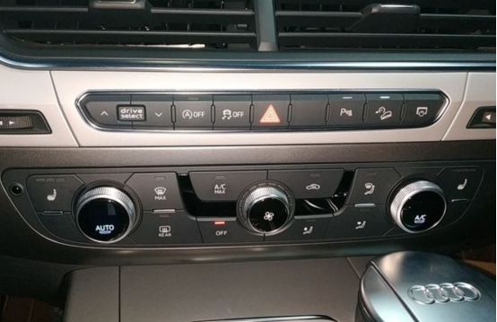 内饰的风格比较简约。我因为之前没咋了解过Q7,我还以为这车没有中控屏呢,结果是隐藏式的中控屏,挺意外的。