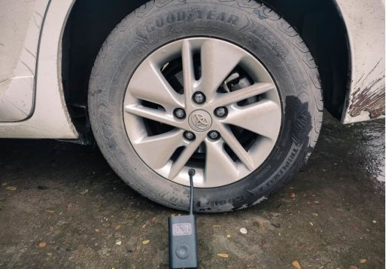 使用小米的充气宝这个玩意充气的速度就是慢,等待了很久才冲到了2.3.2.3Bar的气压对于这套固特异轮胎就很合适,静音以及驾驶舒适感受都不错。有的车友喜欢轮胎软一些,有的喜欢气压值高一些,这个看个人,只要在厂家的建议范围内就不会有什么问题的。