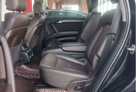 Q7的内部空间也挺大的,前后排都是坐着不拥挤,调整一下,后排坐着还能跷二郎腿呢。