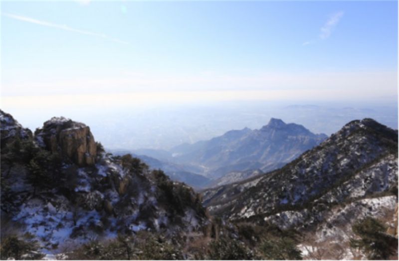 八点多到达了中天门 ,眼前豁然开朗,可以看到远远山上的皑皑白雪,瞬间感觉这趟没有白来。