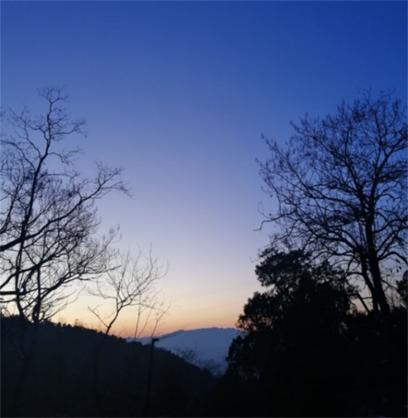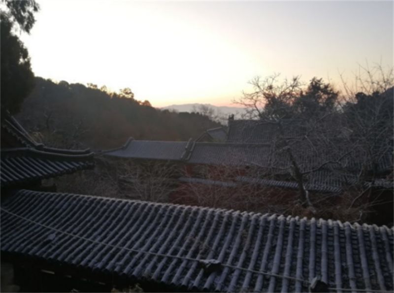 在山下看到太阳缓缓升起,山顶的日出一定很美。从红门到中天门路途上其实没什么看的,而且下面的雪也在渐渐融化。