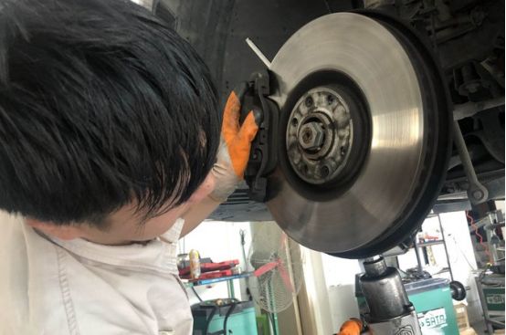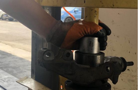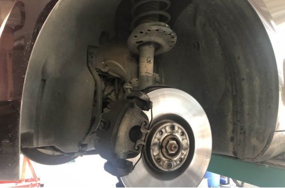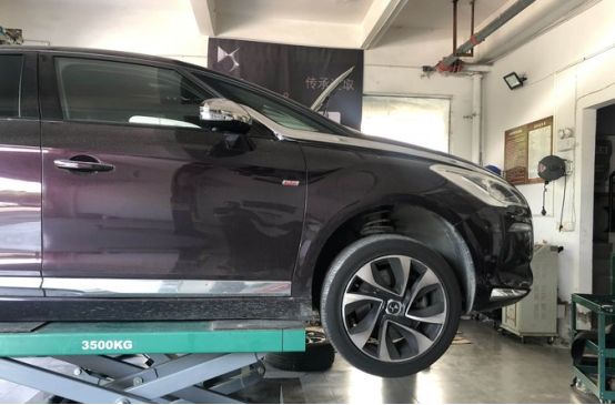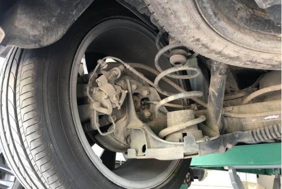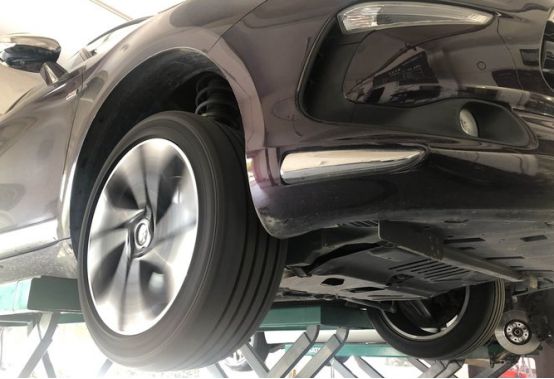 接下来就是按技师的判断来了,上车发动, 再次抬升车子, 踩油门,用听诊器听前轮内侧声音,发现声音出自左前轮,原来是轴承坏了, 需要更换。