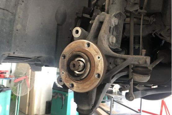 事情还得从年前说起。年假前一周上班路上,耳边总有很奇怪的声音,一来是我没在意,以为是车流里与他车的声音呢,打开音乐,也就对付过去了。后来在空旷的路上也有那个声音了,我就开始留意了。该声音特点是,在加速到70千米/小时时产生,收油门时,随着时速下来,那声音持续得越久,声音类似小型摩托车的排气声。一开始我怀疑是排气管的问题,因为我的上班路会经过一座比较拱的小桥.时速稍微快店它下坡时就会来个比较明显的自由落体。说不定排气管尾段碰到地面了,造成挂钩脱落呢?然而检查后发现不是这么简单的事,原来是左前轴承坏了,需要更换。