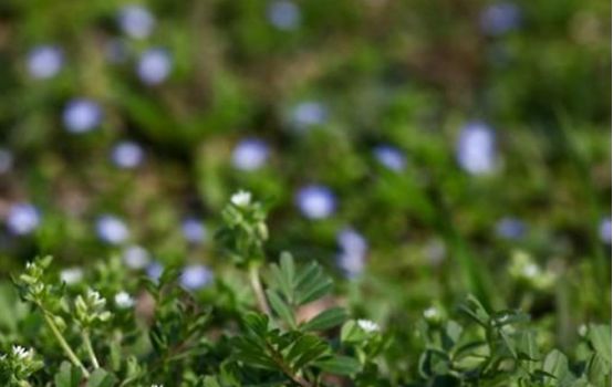 路边的小草开着小花。
