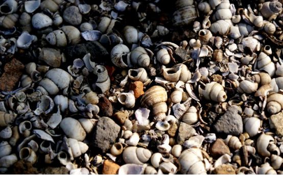 岸边是这样的螺蛳壳铺就的地面。