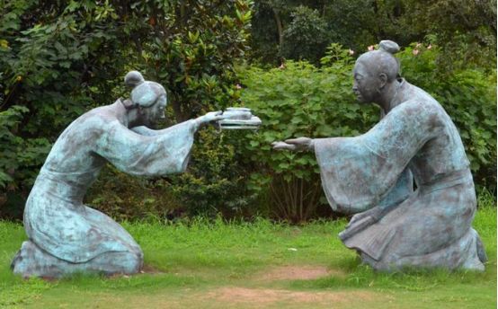 这个是举案齐眉,就是梁鸿公园的梁鸿与妻子孟光之间的和谐故事。