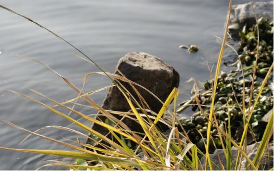岸边的坡地上绿草好像没消失过。