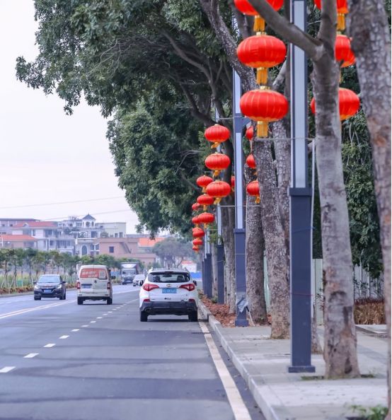 马路边,大红灯笼高高挂,年味还没有散去。