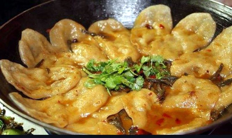 泥泞的小路里藏着美食,朋友一家赞不绝口。
