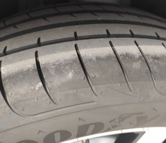 轮胎正面坚韧耐用,因为是SUV轮胎,相比轿车轮胎我觉得可能寿命会短些,毕竟SUV操控刹车更废胎。所以平常我也很注意轮胎养护。