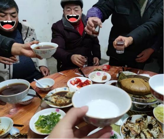 一大家子坐一起吃饭也只有每年春节才能实现。宾客前来敬酒,不好意思拍照了,偷偷拍了一张。