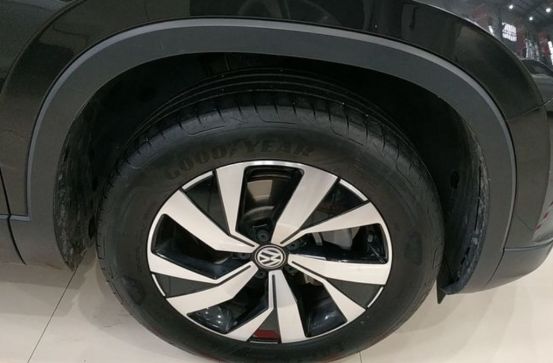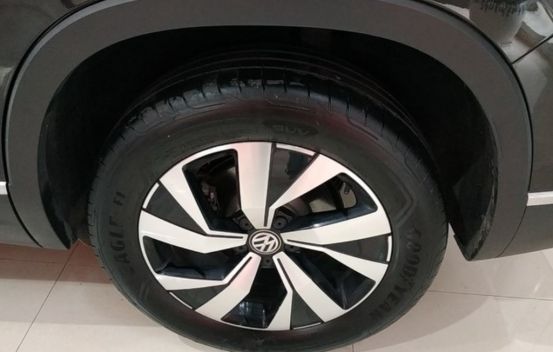 探岳这车的整体颜值大气时尚,在我看过的车子里算是数一数二的。除此之外,它的一些配置也选用的是高端品牌。就比如它的固特异轮胎,我后面看了下,它用的是固特异F1胎,采用了自控制动科技,所以抓地力很强劲。在我试驾的时候就感觉到了,无论是湿滑的路面,还是在高速之后的转弯,车身都是不打滑的,轮胎抓地挺牢实的。