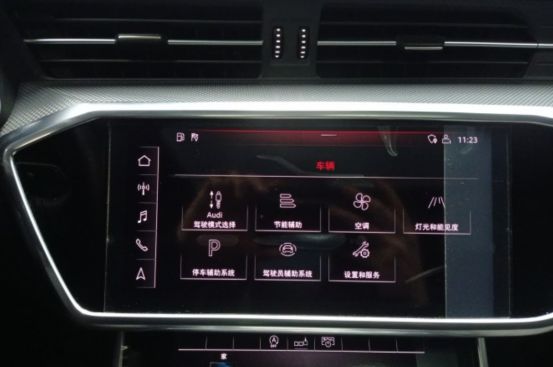 中控屏的界面设计很简洁,丝毫没有多余的颜色,该有的功能也都有的。