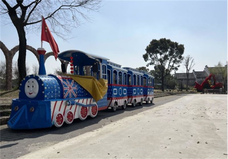 另一端有个小广场,上面停着一列小火车。