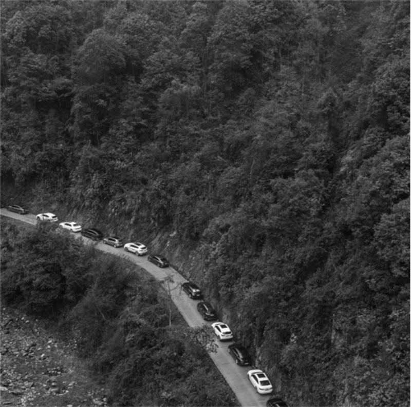 早上五点多从永州出发,经过三个多小时的免费高速行程,大概8点多我们就到达了景区门口的区间车处,由于来得早,经检查后,直接开车进入。从高速下来, -路都是盘山公路,来往共两条车道,弯路陡转,开车需要十二分精神,老人家和小孩在这个过程中转得都要呕吐。东是新开放的入口,上山后发现有人是从西门进的,没有缆车,价格便宜很多,但不知这么陡峭的山路,他们是怎样上来的?如果来得晚了,在大巴接驳区有停车场,停好车后有免费大巴将游客拉到景点缆车入口。进入缆车乘坐区,缆车是在转盘处循环出发的,限乘8人,没上满人转过去就出发了。