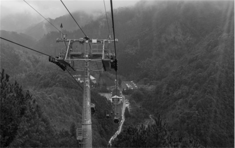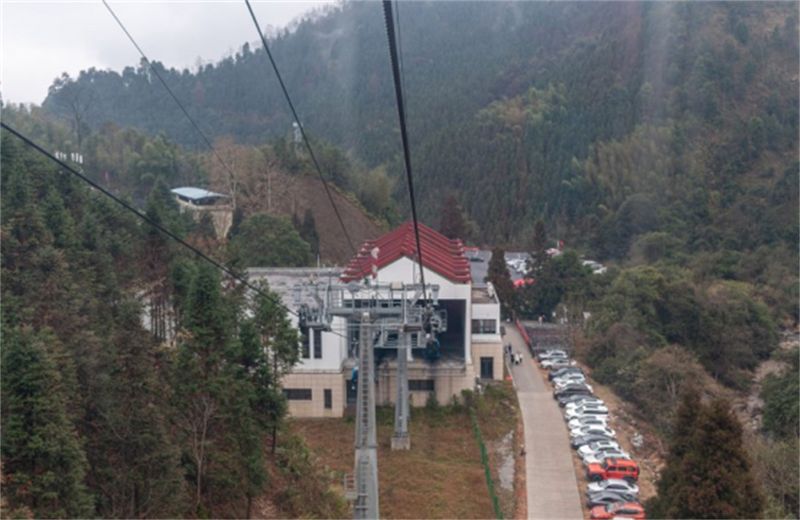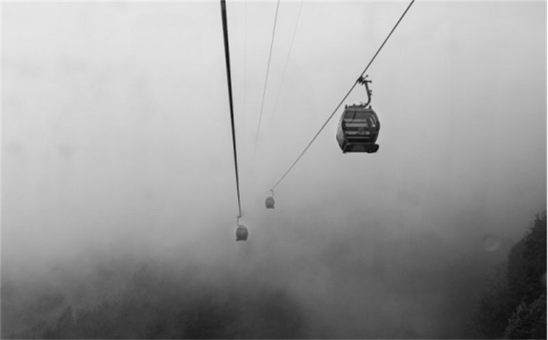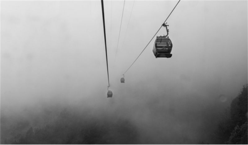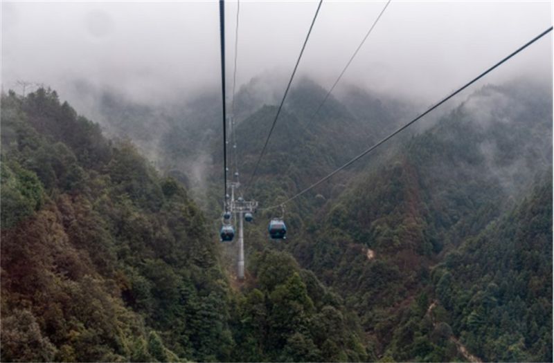缆车全长3.7公里,落差1000余米。它-节-节地上升。有时它在白雾中奔跑,看不到周围的-一切。只有对面的缆车隐约可见。有时山风吹散雾气,你可以看到下面深不可测的山谷,上面覆盖着茂密的森林。整个过程耗时约20分钟,行驶平稳,但也令人恐惧和虚弱。