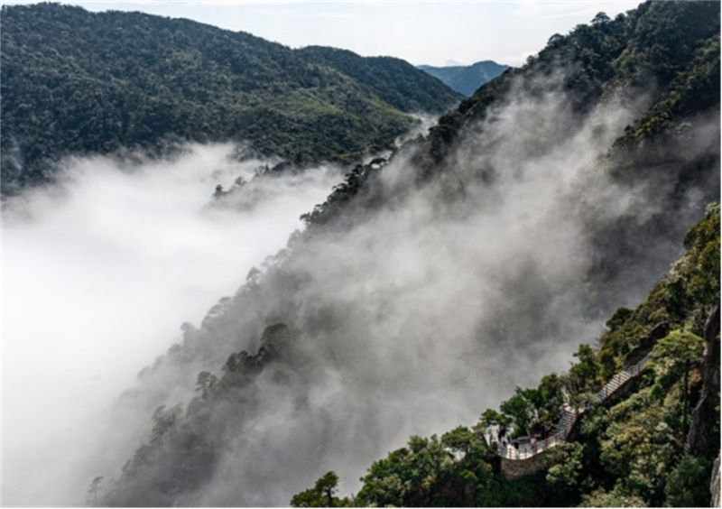 3、看好天气出游。莽山最好选择晴朗有风的夏日, 可看到阳光穿过云层,净透的蓝天白云薄雾缭绕,能拍出美照,天可看雾淞。