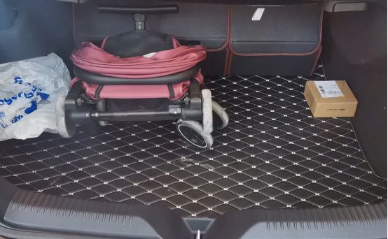 后备箱常年一辆童车,空间还是蛮大的,出去购物基本都塞得下。