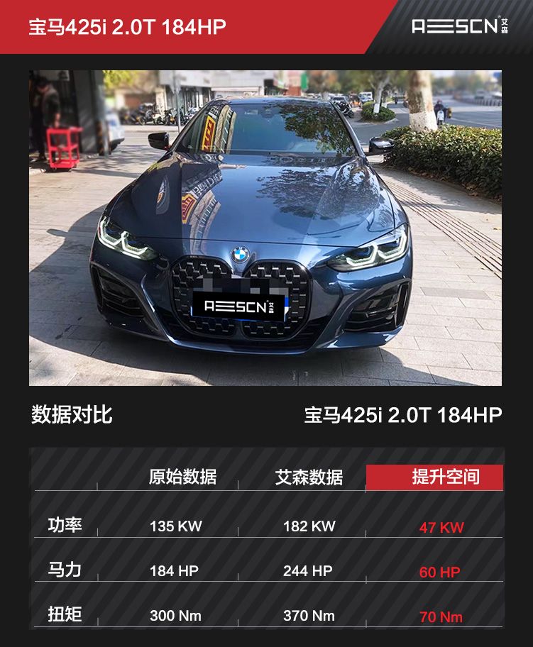 21款宝马425i搭载了一台代号为B48B20A的2.0T低功率款发动机,最大功率为135KW/5000-6500rpm,最大扭矩为300NM.1350-4000rpm。传动系统依旧匹配的采埃孚8速自动变速箱。车主曾经关注过ECU升级,但是随着等待时间太久,变得心急起来,得知TuningBox C2电脑已有425i成熟施工案例,便提前预约安装并实际体验到C2电脑可特调的魅力。