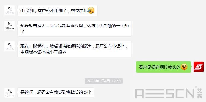 试驾反馈:提速变轻松,加速过程比原厂动力输出更充沛,而且平顺性比预期要更合适。车主反复表示动力优化的很满意。而随车一起试驾的工程师也结合实际驾驶情况给出总结:起步更轻松,提速顺畅,小顿挫缓解,真正实现了动力特调