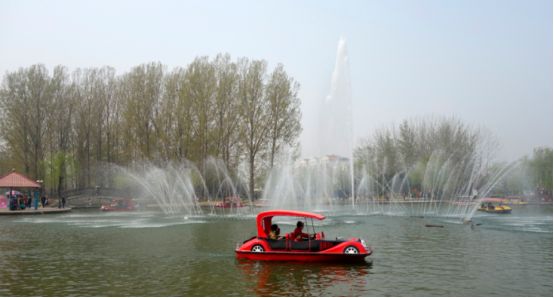 回龙园这边还挺热闹的,感觉蛮多人来这边玩啊。不过现在还刮着些春风,这些在湖面上划船的人不冷吗?我反正是觉得有些凉意啊。