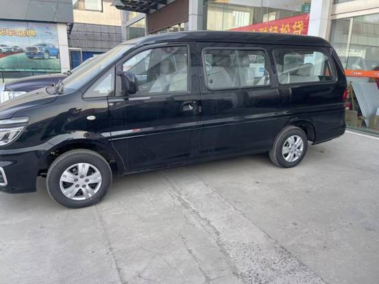 侧面看起来车身挺长的,腰线简单且硬朗,侧滑门在右面,左面没有。