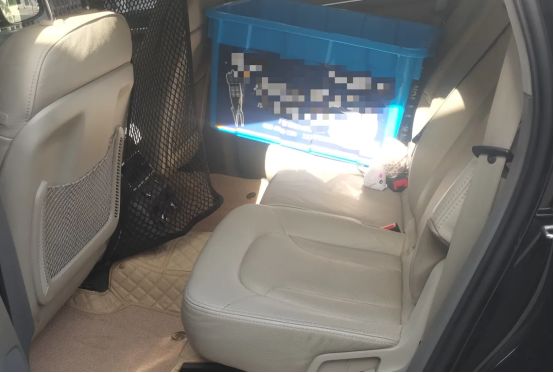 这本是七座车,不过第三排基本用不到,所以直接放倒当后备箱了。