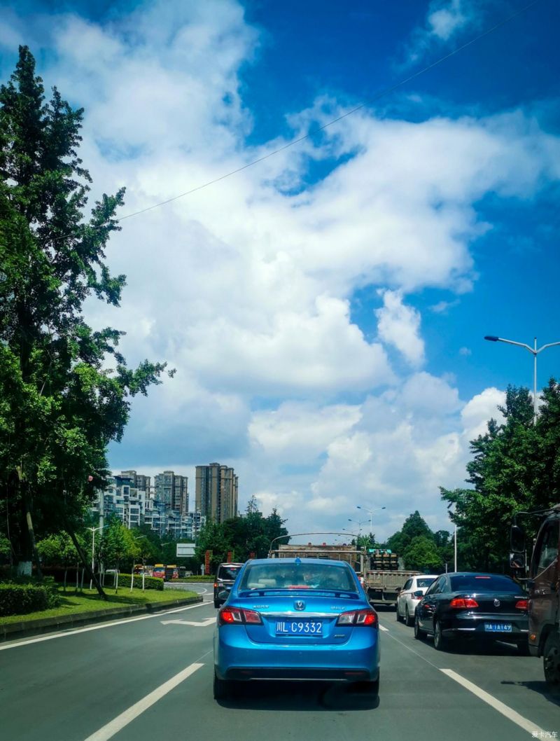 在城市郊区的道路上一路欢歌,在这蓝天白云下向邛崃的南宝山出发 ~~~