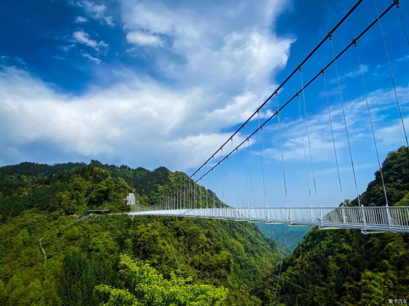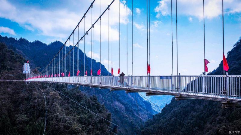 根据景区的介绍了解到这是成都境内跨度最长(333米),落差最大(207米)的,高颜值7D玻璃天桥。