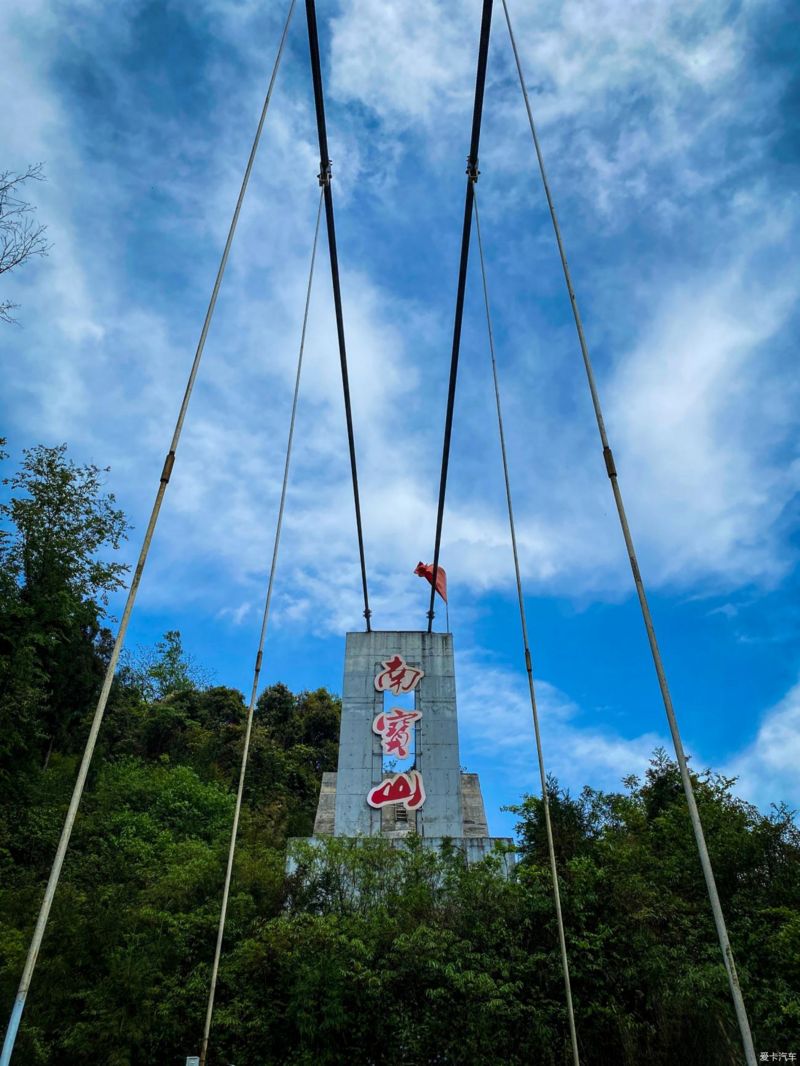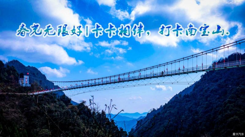 在玻璃吊桥上醒目的“南宝山”三个字,在蓝天白云下十分的醒目~