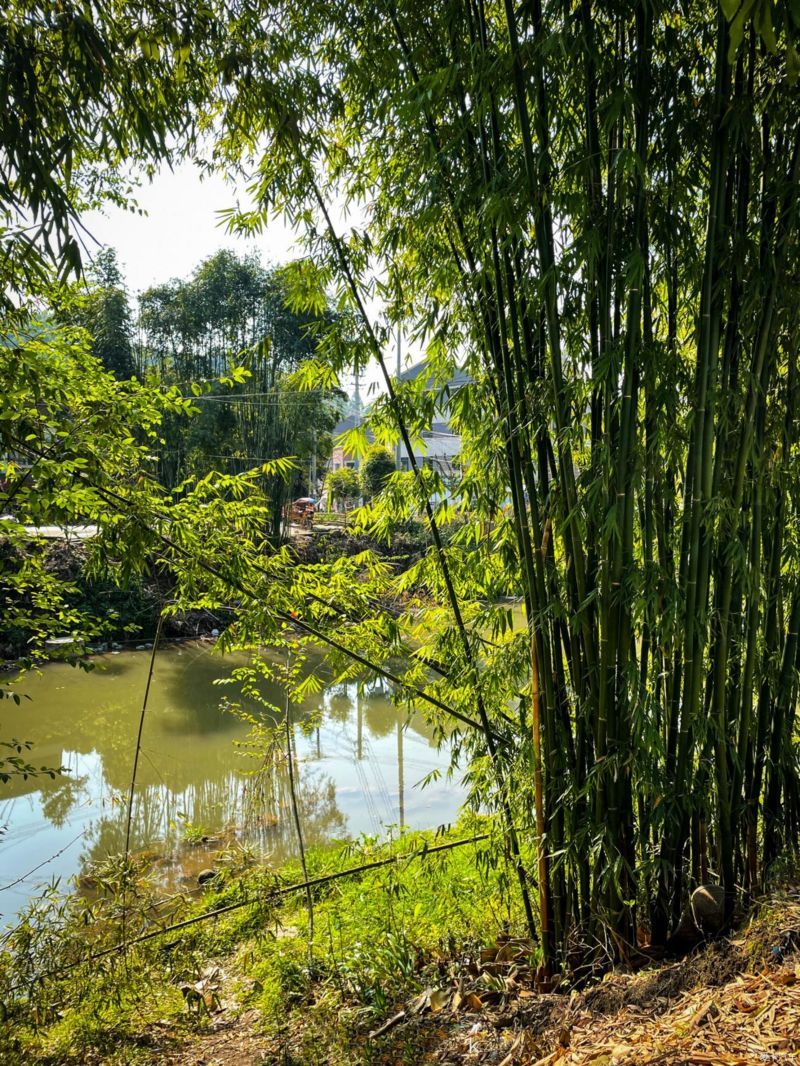 路过一篇竹林,在乡村小路边停车休息下 。