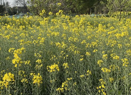 来到郊区,最不缺的就是这成片成片的油菜花了,只是来得也晚了。放眼望去,早没了满眼金黄的意思了。绿色赶着黄色,马上这片黄色就要消失了。