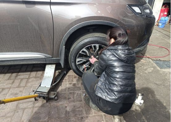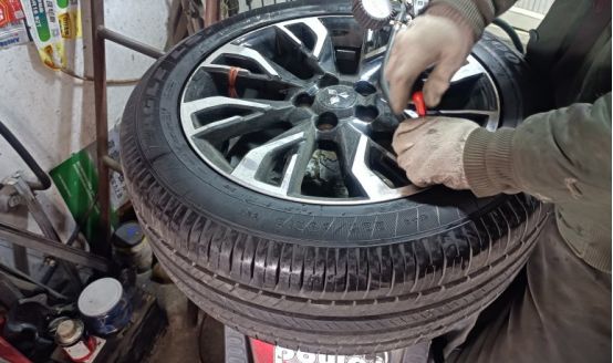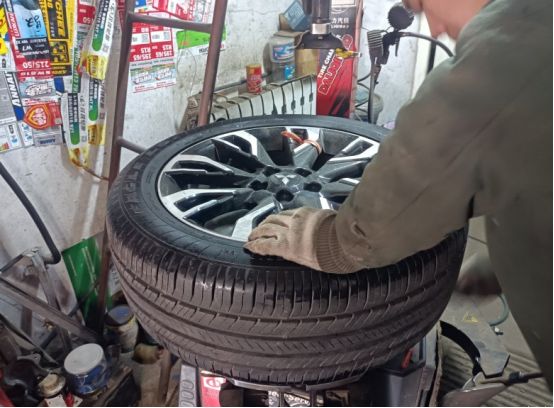老板娘非常能干,自动手, 要知道装卸轮胎可真 是个体力活啊, 18寸的轮毂t轮胎少说得有个30斤以上吧,真是女中豪杰啊,希望老板看了这帖子下次能给打个折啊