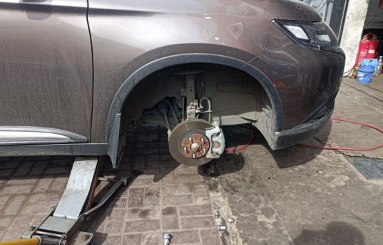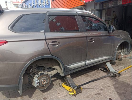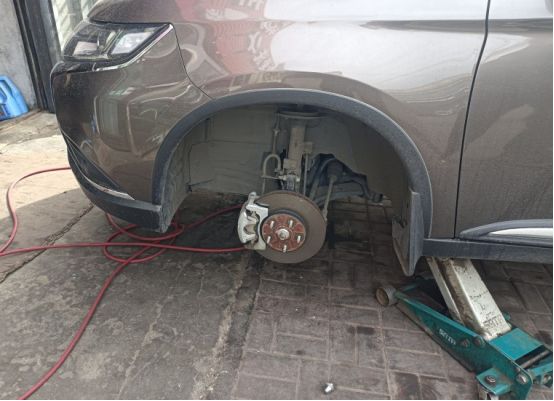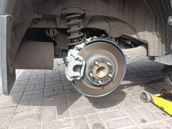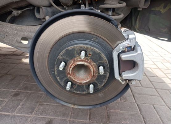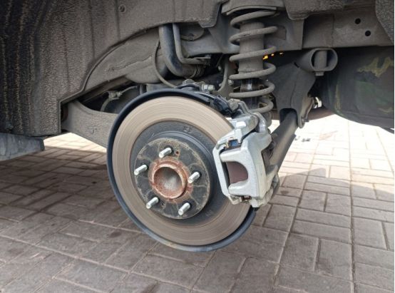 趁着轮毂被拆下,检查一下刹车盘磨损情况