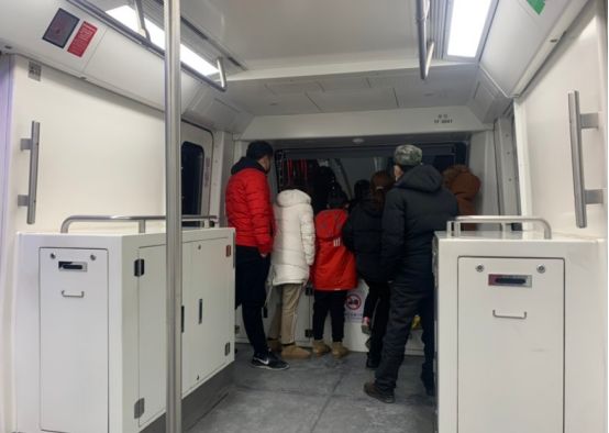 一群人都来观摩地铁的运行!