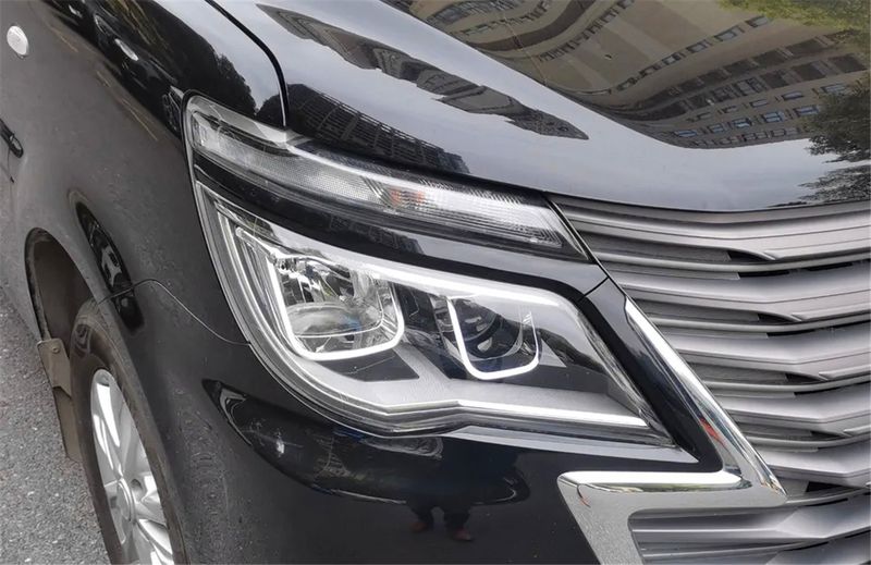 45度角的菱智显得更有商务气息了,黑色的车身、造型犀利的大灯搭配在一起非常的亮眼。