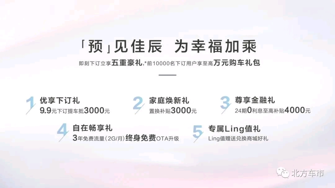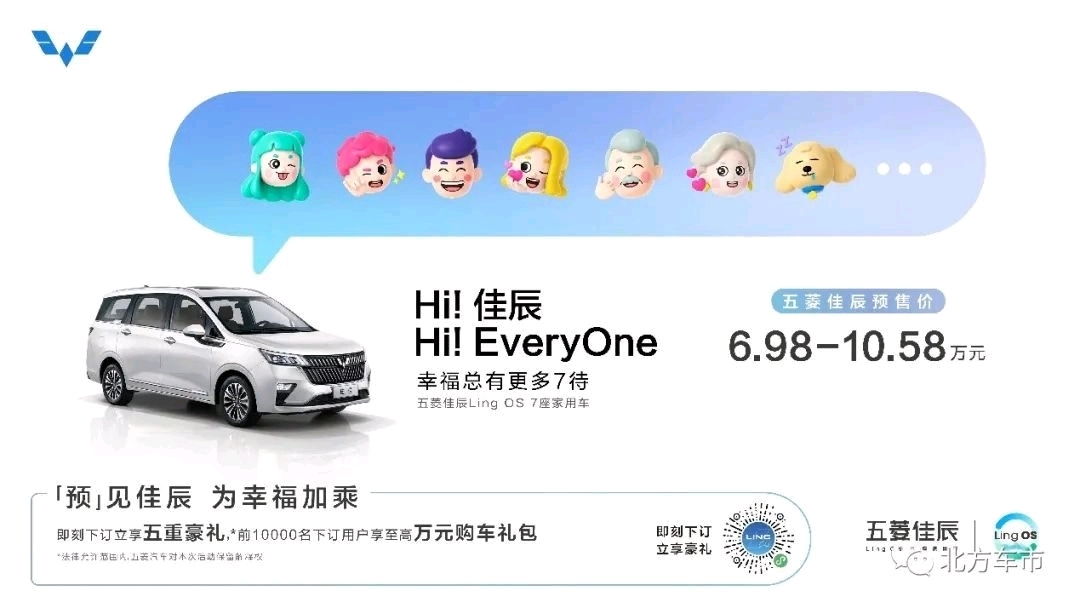 五菱佳辰集品质与实用于一身,凭借7座宽敞空间、舒适内饰、人性化设计、Ling OS灵犀系统等获得广大用户的关注。今日起至正式上市前,用户可通过五菱宝骏天猫及京东旗舰店、LING Club APP/小程序等官方指定线上渠道支付9.9元下订,前10000名下订用户更可享受价值万元的「五重豪礼」:包含9.9元下订享3000元购车现金优惠、置换补贴、24期0利息/36期低利息、三年免费流量(2G/月)终身免费OTA升级、Ling值赠送等专属幸福大礼包。五菱佳辰低至6.98万元的亲民预售价,让幸福出行有了更多期待。