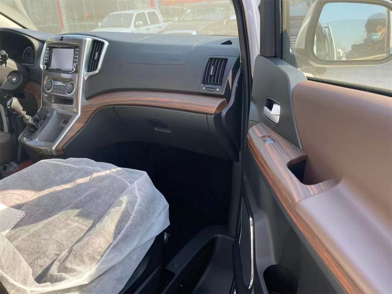 打开车门,虽说之前在网上看过图片,但眼前的画面依然让我意外,内饰是黑色和棕色相搭配,显得稳重大方,中控台上以及门板这里还用了大面积的木纹饰板,顿时觉得整个内饰豪华感又提升了几分,作为一辆十万出头的MPV来说,这种感觉让我很是满意。