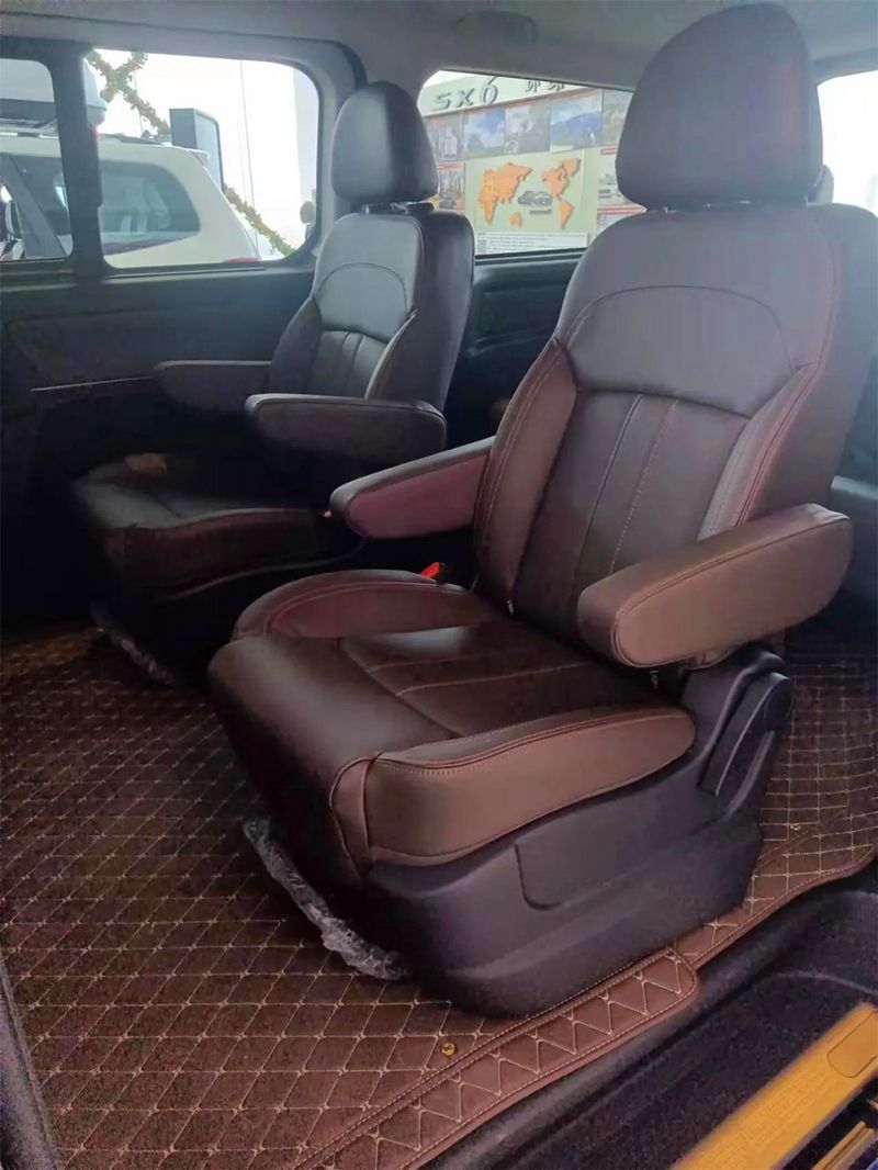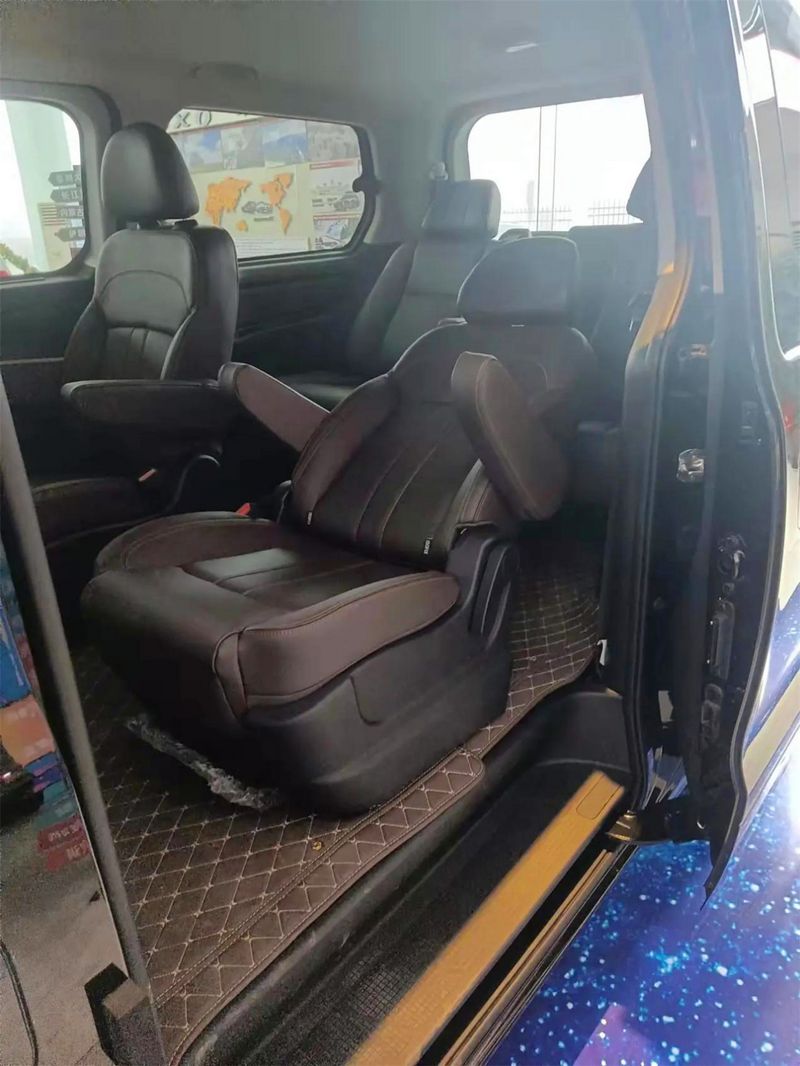 最舒适的是中间的两个独立座椅,菱智PLUS有七座的还有九座的,这车是七座的,中座的两个座椅可以和前排座椅一样前后调节,还可以调节椅背,座椅宽大厚实,坐上去感觉非常地舒服,空间方面这种独立座椅不管是头部还是腿部或身体四周,都比三连座要宽松得多。