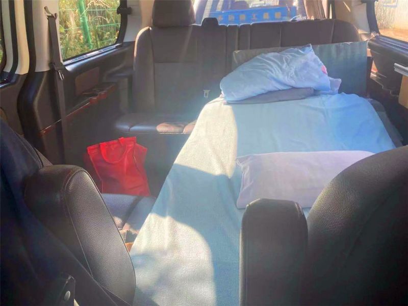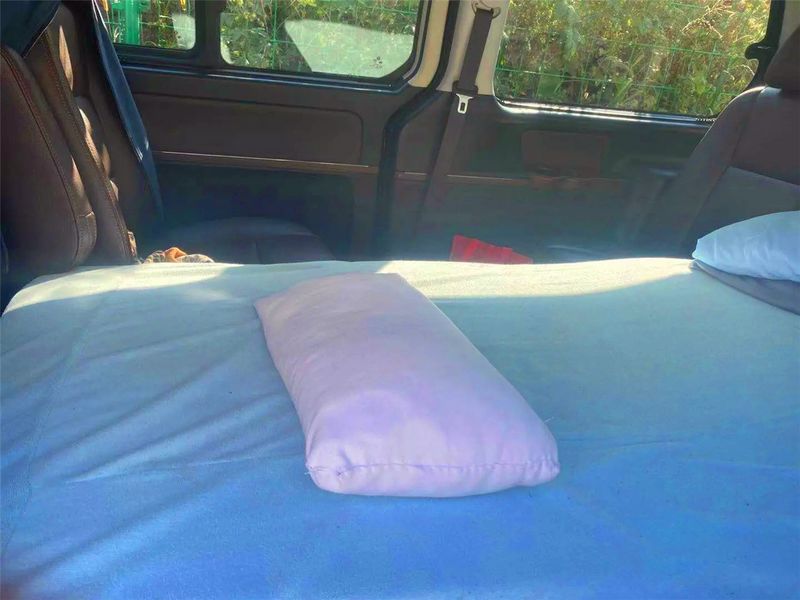 两个座椅正对着,就像火车上的座椅一样,上面铺一个空气垫,此时此刻,我特别期待来一次长途自驾,这个空间,外出就不用住酒店了。