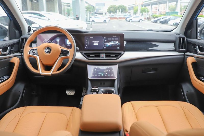 内饰方面W6风格有了较大的变化,内饰采用黑色和棕色撞色拼接设计,非常潮流化。威马W6还配备了独立全液晶仪表盘和可旋转屏幕,还有双12.3英寸联屏和空调触控屏,看起来非常具有科技感。并使用了高通骁龙8155的车规级芯片SA8155,官方数据显示,这款芯片算力能够达到360万次/秒,比特斯拉HW3.0芯片还要高2.5倍。并且车内没什么异味,没明显的接线处,整体简约大方。