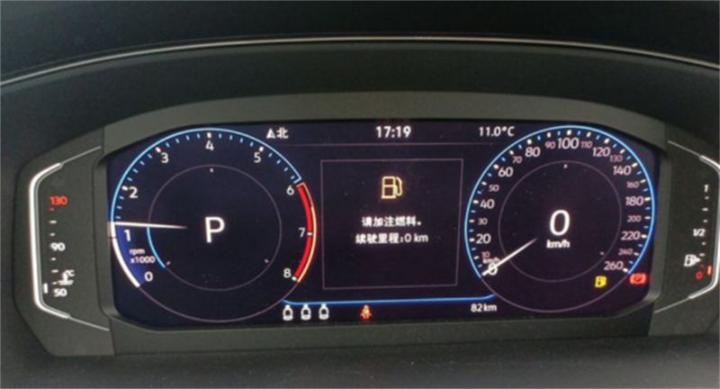 出厂的时候二十几公里,自己提车的时候开了五十公里到家,故意把油箱开空了,准备去加满油。