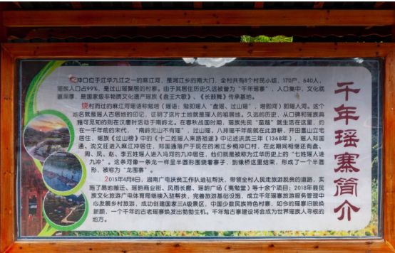 站在村口,首先映入眼帘的是瑶族古者的木屋,有流苏、河流、桥梁、树木和青山。你不禁想起诗中"小桥流水人家”的优美意境。