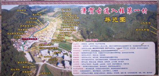 位于崇山峻岭间的岔山村,远远的一幅古朴的山村美景映入眼帘。村后的靠山与另- -座山形成岔口,古道穿岔口而过,或许这就是岔山的来由吧! ( 又-说:天降异石,山开两岔,岔山因山势而得名。)古树参天 ,清澈的溪流绕村而过,走过牌楼,两边的停车场E经停满了小车,游人如织。进村的桥头, 一座潇贺古道入桂第一村 “灰底黑字的牌子格外显眼,字体飘逸俊雅,古色雅意。