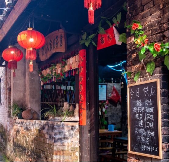 潇贺古道石板街两侧,全是油茶馆、饭店、特产店和各类文艺小店,值得慢游和细品。