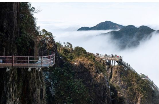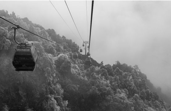 在婉如仙境般的云雾中穿梭,偶尔是白茫茫- 片。