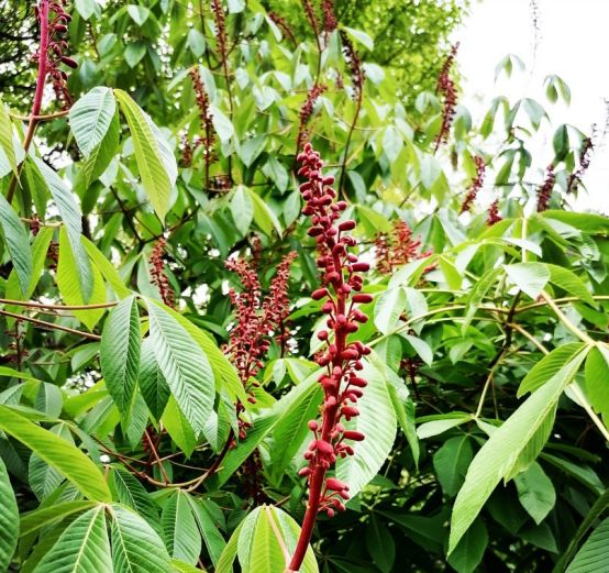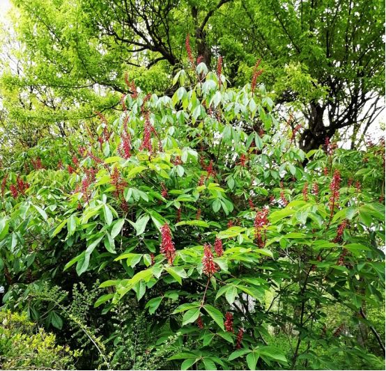 一串串红花,耸立于枝头。迎着暖风而翘首。