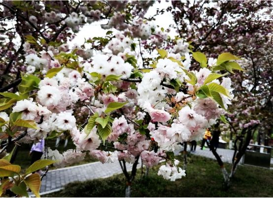 樱花也是不服气,一簇簇的花头,洁白而素雅,引得游人驻足观赏。