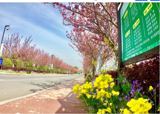 从九龙湖出来后,边走边观察,最后停在一个免费的停车场。停下车,发现不远处有一排的鲜花一樱花, 于是在经过协商后,我开车进来了。 其实车子也就只在这条短短的一-段樱花路上来回一趟。这难道是晚樱,满树的花骨朵,盛开的却不多。树间的二月兰和油菜花开的正艳。把车停在景区内的停车场,然后再走回来,漂亮的樱花大道。这条路真是名副其实一花园路"。