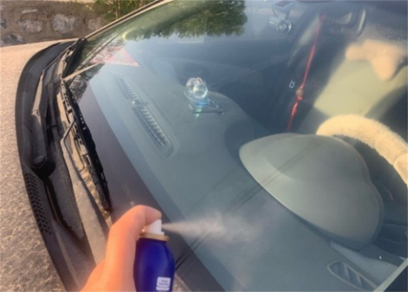距离玻璃十五公分左右均匀喷涂!等待晾干后!用毛巾打磨抛光!